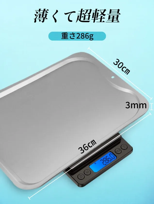 3mmの薄さ、286gと超軽量です。厚みがある、これまでのまな板とは全く違った薄さと軽さです。見た目もシャープでカッコいいから気分も上がります。