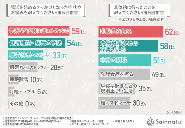 先ほどの調査で腸活を始めるきっかけ、実際に行った腸活について明らかになりました。