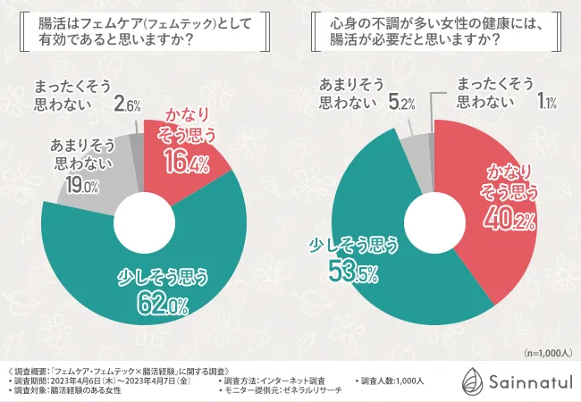 8割弱が腸活はフェムケア(フェムテック)として有効だと回答!女性の心身の不調には腸活がおすすめ
