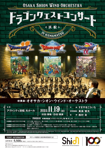 日本で最も長い歴史と伝統を誇る交響吹奏楽団のOsaka Shion Wind Orchestraを有する公益社団法人大阪市音楽団(本社:大阪市住之江区/理事長:石井徹哉)は、11月19日(日)にドラゴンクエストの公式吹奏楽コンサート「Osaka Shion Wind Orchestra ドラゴンクエストコンサート in 浜松」を開催いたします。