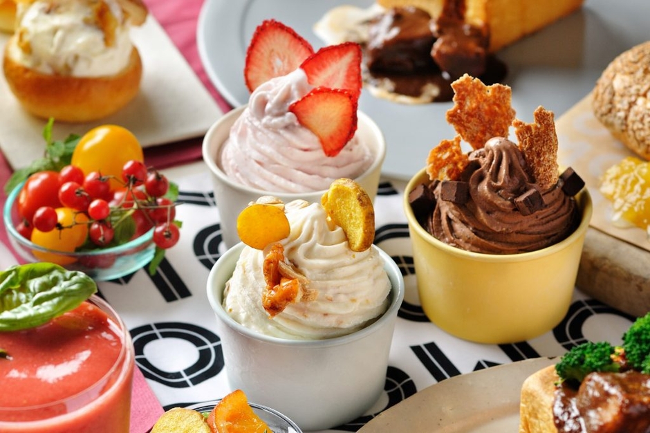アイスクリームと、熊本で親しまれている銘菓や甘味などの具材をその場で混ぜて作るジェラートです。3種類のフレーバーと9種の具材を用意しているので、好みの組み合わせに出会えるのも楽しみのひとつです。