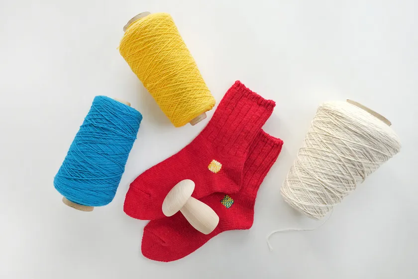 ワークショップには手ぶらでお越しください。使用する靴下、糸、道具など全てS.Laboに揃っています。