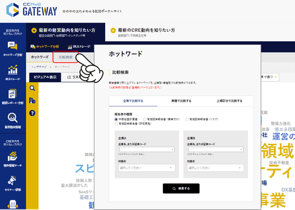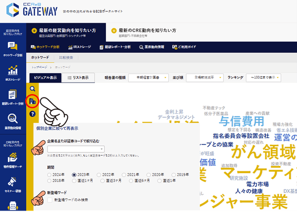 時間が無い中でもCCReB GATEWAYを使えば、気になる業界・企業が何に重点を置いて“今”経営をしているのか、一発で分ります!