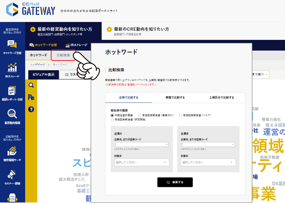 →詳しい検索方法は「ご利用ガイド」掲載の動画をご覧ください(https://ccreb-gateway.jp/guide-hot/)