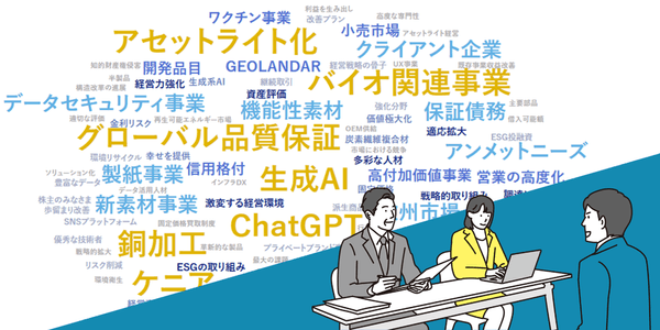 国内上場企業約3,900社の経営動向を365日追う会員登録・利用料が完全無料のポータルサイトです。サイトのメインコンテンツである「ホットワード分析」は、上場企業が1年間の業績と今後の展望を報告する「有価証券報告書」と、投資家に向けて中長期視点での経営方針を発信する「中期経営計画書」を、企業が開示すると自動でデータを取込み、テキスト解析・ワードクラウド化。