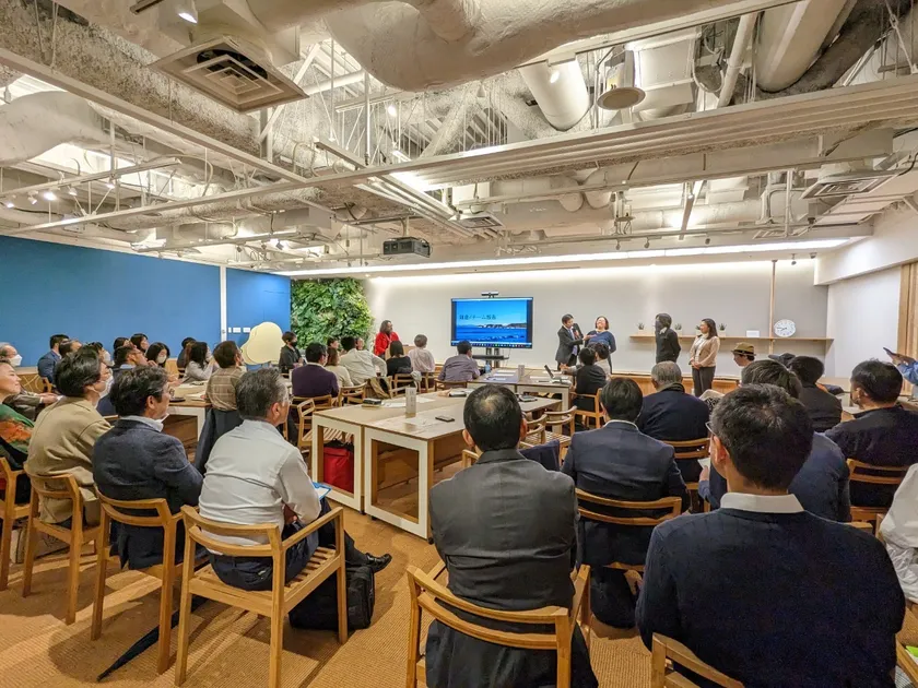 丸の内朝大学実行委員会(大手町・丸の内・有楽町地区まちづくり3団体及び株式会社サンプラックスの計4団体で組成)は、これまでの働き方、暮らし方が大きく変化したアフターコロナ時代に、特に多拠点生活に興味を持つ丸の内のビジネスパーソンと地方自治体を繋ぎ、新しい地域創生の形を共に研究し実行する「多拠点生活研究所」を2022年9月に開所いたしました。6ヶ月の活動期間を一つの区切りに、これまでの研究内容を発表する第一回シンポジウムを2023年3月17日(金)に開催しました。シンポジウム当日は、大手航空会社やヘルスケアメーカー、地方創生に携わる企業など30名以上の観覧者が期待を膨らませ見守る中、第一弾研究員25名4チームの白熱した報告が行われました。