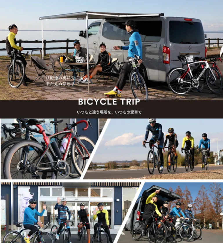 ロードバイクを最大4台積載可能で、備え付けの専用治具でしっかりクルマに固定できる「バイシクルトリップ」は、愛車を傷つけず安心して運ぶことができて仲間や家族と一緒にサイクリングを楽しむことができます。ヘルメット収納スペースやメンテナンス工具、空気入れといった愛車で走るための必要な装備も揃っている、ロードバイク愛好家必見の「STORYCA」です。