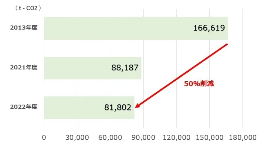 【2022年度のScope1、Scope2のGHG排出量は2013年度比50%削減】