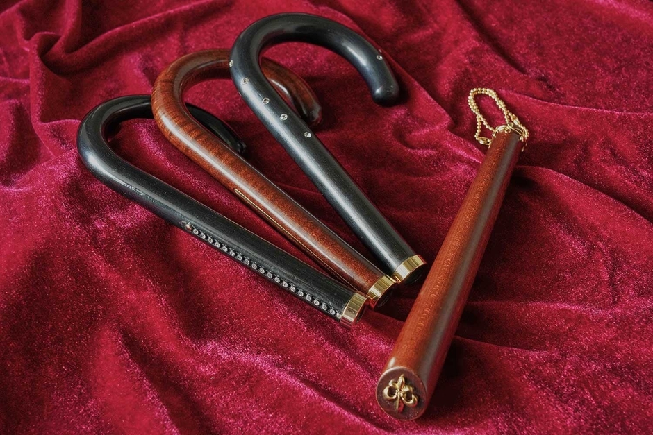 透明度の高いスワロフスキーを埋め込んだハンドルや、繊細なワイヤー細工を施したストレート手元など、加工技術の高さを活かしたオリジナリティあふれる手元がそろっています。どれも作り手が細部にまで趣向を凝らした一点物です。