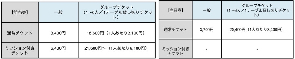 ※ミッション付きチケットをグループチケットでご購入いただく場合、ミッション付きの希望人数をご購入時にお選びいただけます。グループ全員がミッション付きをお選びいただくとよりお楽しみいただけるためオススメです。