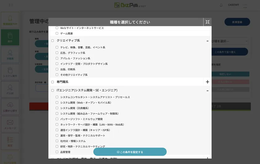 ・非公開設定をすることで自社の案件や人材を管理する管理システムとしての利用も可能