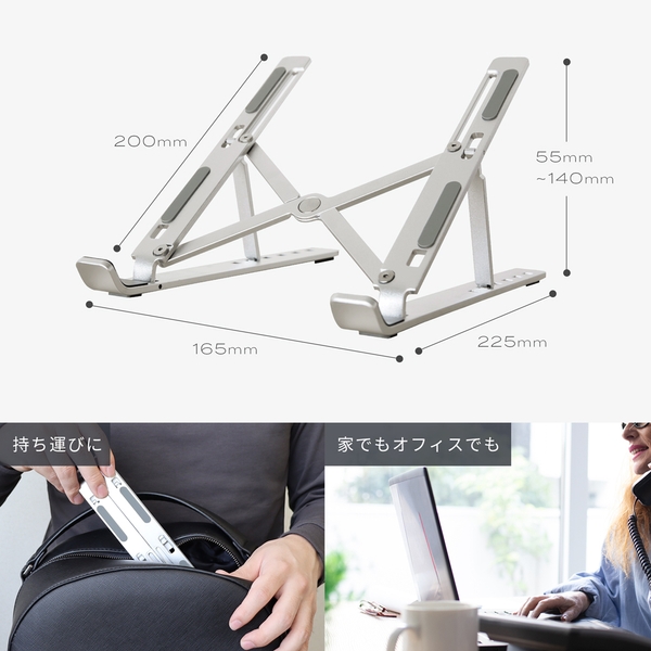 在宅勤務が増えている中、手軽に持ち運べるノートPCスタンドの需要は高まっており、ノートパソコンやタブレットの使用環境を整えることで、身体の疲れを軽減し、仕事の効率も上げてくれる人気アイテムとなっています。