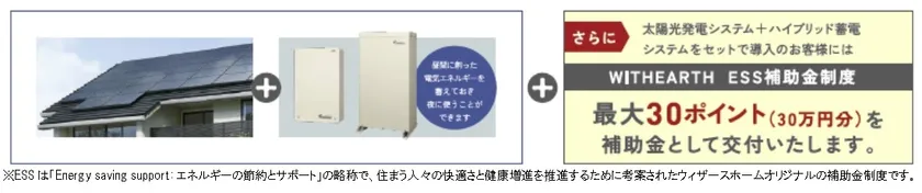 ※ESSは「Energy saving support:エネルギーの節約とサポート」の略称で、住まう人々の快適さと健康増進を推進するために考案されたウィザースホームオリジナルの補助金制度です。