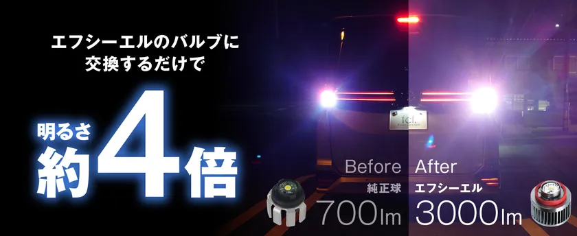 エフシーエルのバルブに交換するだけで明るさ約4倍