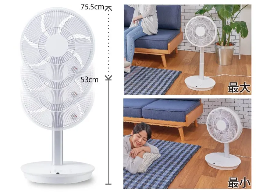 収納時の高さ約14センチ「コンパクトに収納できる扇風機」