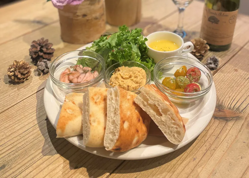 ひよこ豆のフムスプレート(デリ2種・スープ・フォカッチャ付き)