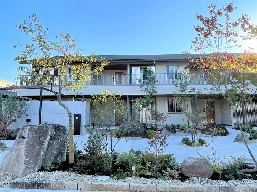 敷地内には今西様のご自宅と、シャーメゾン2棟を配置。ゆったりとした雰囲気で暮らして欲しいという思いから、シャーメゾンは敢えて2階建てにし、広々とした庭は、入居者の皆様がいつでも自分の庭のように心地よく過ごせるよう設えました。約100トンあった既存の石は、庭の築山や玄関アプローチなどに全て再利用しました。「庭に置いた大きな石は、大人は座って食事をしたり、子どもは遊んだりと、使い方は無限です」と妻のM様。