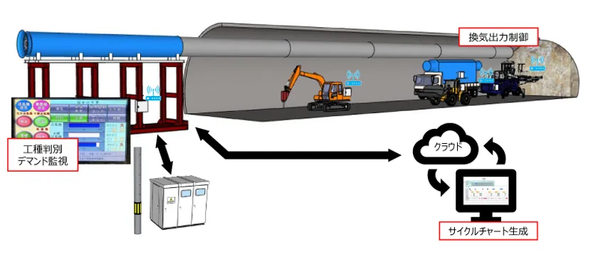 この一環として、トンネル現場の重機機械・プラントの稼働状況を把握し、作業工種を判別することで省エネルギー化と施工効率改善の支援を行う施工管理システム「Hi-Res(注1)」を菅機械工業株式会社(本社:大阪府大阪市、代表取締役社長:菅 大樹、以下「スガキカイ」)と共同で開発しました(図1)。
