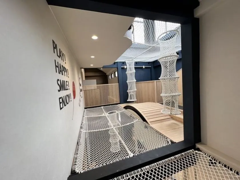地上3階建ての施設は、1階は乳幼児向け、2階・3階は幼児・小学生が遊べる施設になっています。吹き抜け部分にはネットを張り巡らせ、行き来ができるようになっており、3階には写真撮影にも合うユニークな迷路など、雨の日でもアクティブに過ごせるようになっています。おままごとや、電車のおもちゃ、マグネット遊具など、どの年代の男女でも遊べる遊具をたくさん用意しています。旅行中のご家族、近隣のご家族どなたでも、雨天や、猛暑など天候に関係なく、家族で楽しめる施設をつくってまいります。