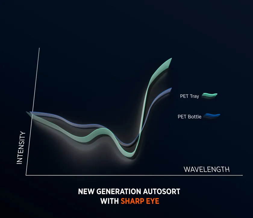 新型AUTOSORT(TM)に細密な選別を可能とするSHARP EYE(TM)を搭載することにより、同材質であるPETボトルとPETトレーであっても、成型方法の違いによる結晶密度の違いを識別し、秒速3mの高速選別を可能にします。SHARP EYE(TM)は、ベルトコンベアのスキャンエリアに継続的に強い焦点を当て、材料の重要な化学的性質の違いや微細な分子の違いまで識別します。より高い光密度とポイントスキャンシステムを活用し、単層PETトレイとボトルの分離だけでなく、FLYING BEAM(TM)技術を搭載したAUTOSORT(TM)ユニットと組み合わせて混合PETをポリマー種類別に分類し、混合処理でも高い選別精度を実現しています。これまで一括して収集された廃棄物は燃えるゴミとして処分されていましたが、トムラの選別技術によって再生可能な貴重な資源として生まれ変わることができます。