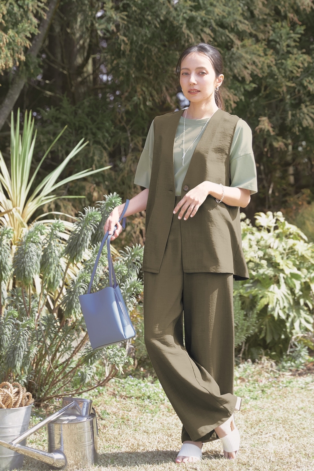 そんな「フレンチリネンブレンドシリーズ」を素敵に着こなしているベッキーさんのヴィジュアルルックはこちら!