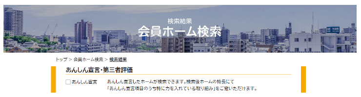 あんしん宣言したホームは、有料老人ホーム協会の「個人のお客様・消費者向けサイト」で検索してください。