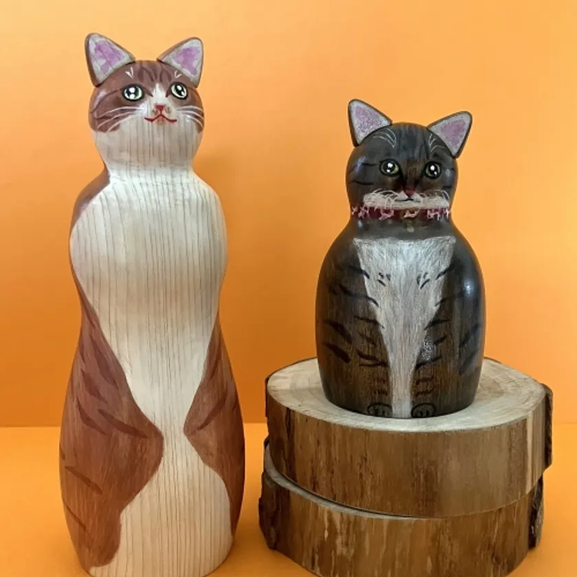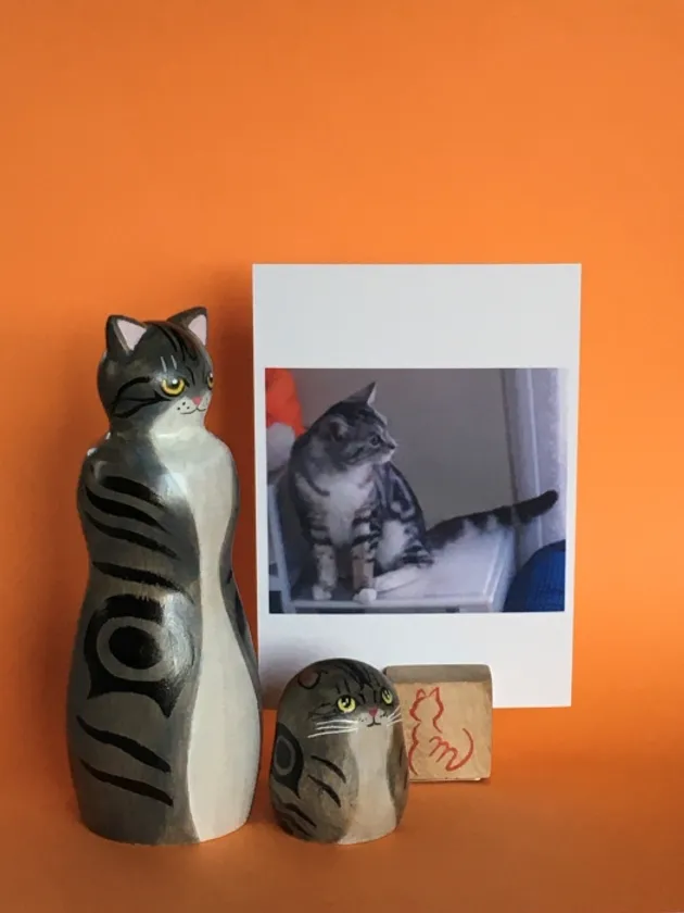 2. 木目を活かした絵付けにこだわっていて、猫の毛並みのナチュラルな質感が優れもの。