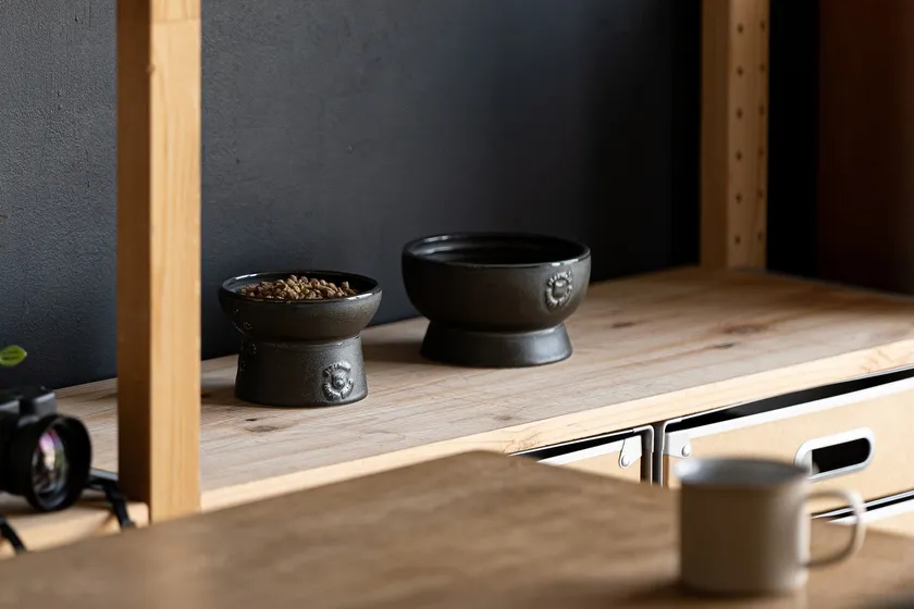 猫壱の脚付フードボウル・脚付ウォーターボウル 日本製を手がけるのは、丸朝製陶所。