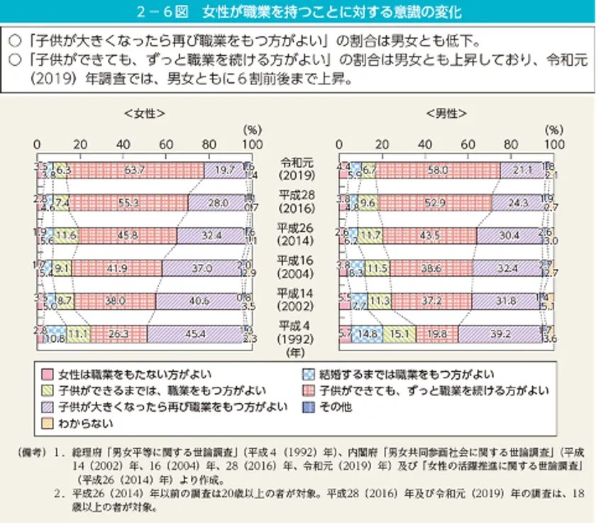 内閣府の「男女共同参画白書 令和4年版」女性が職業を持つことに対する意識の変化