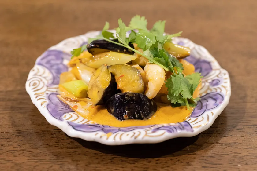 ココナッツミルクの甘味と豆板醤の辛さがマッチして、新感覚の味わいを楽しめる一皿。