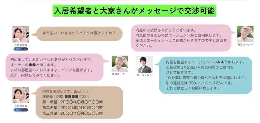 大家さんと入居希望者のメッセージのやり取りイメージ