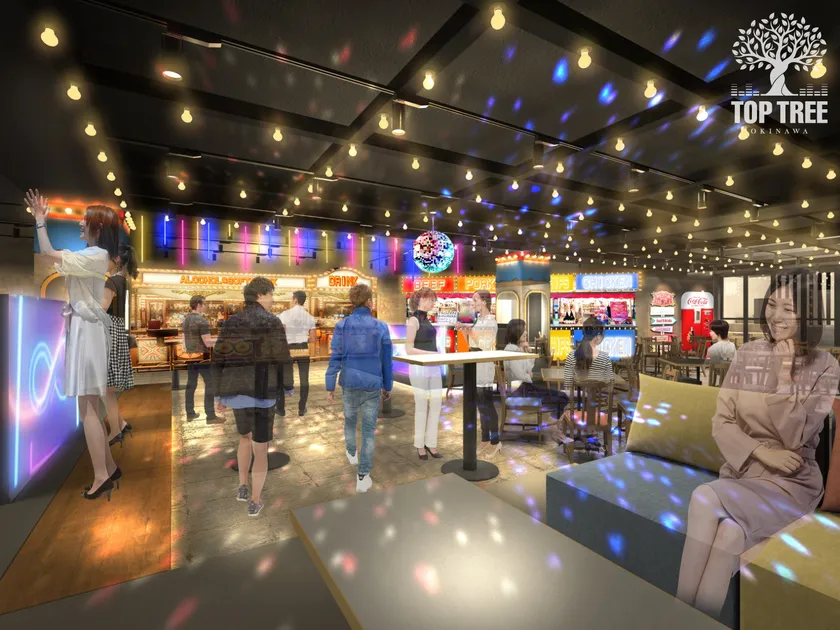 「食べる」「飲む」「遊ぶ」「出会う」をコンセプトに、店内には屋台村さながら、様々な飲食ブースが立ち並び、自由にご飲食をお楽しみいただけるとともに、遊びと音楽の要素を充実させることにより、ご来店いただいたお客様同士の交流の場としてもお楽しみいただける、沖縄初のエンターテイメントフードホールです。