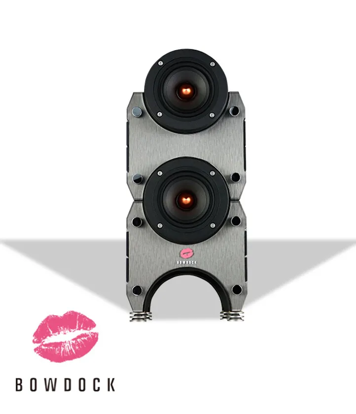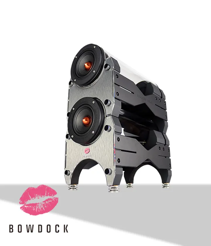 従来の四角いスピーカーシステムとかけ離れた、機能から生まれた構造による異端進化系フォルムがBOWDOCKブランドの特徴です。BOWDOCKとBOWDOCK SOLIDの二卵性デザインを世の中にお披露目できる日を楽しみにしていました。