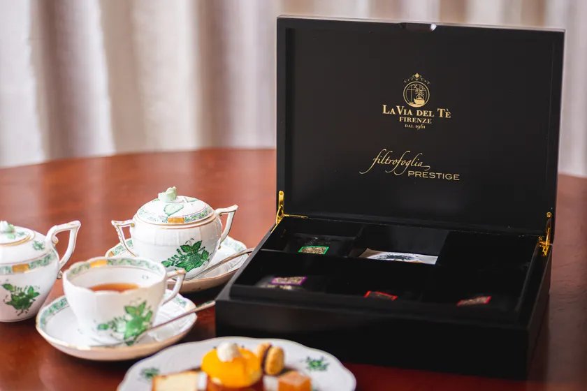 アフタヌーンティコースの紅茶は全てイタリアの高級紅茶メーカー ラ・ヴィア デル・テの茶葉を使用しております。イタリア語で「お茶の道」を意味するラ・ヴィア デル・テ。ティーパックにはシルクを使用するなど、細部にまでこだわりを感じるフィレンツェ生まれの紅茶メーカーです。イタリアの高級レストランでも使用される至福の一杯をぜひご堪能ください。