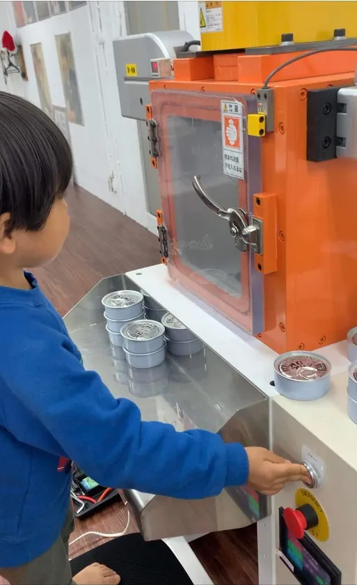 浪速工作所開発の缶詰巻締め機「CANメーカー」実機の操作が可能