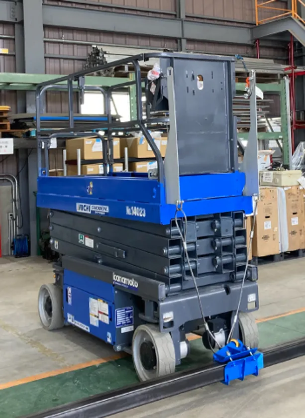 ・物流倉庫建設現場などで壁や天井を施工する際に使用する自走式シザース型の「高所作業車」をベース機とし、上昇時地上高6mと8mの機種で開発しています(注1)。角パイプは寸法が縦100mm×横100mm、最長8m、最大重量105kgまで対応可能です。