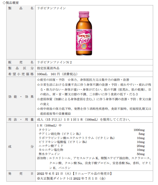 大正製薬株式会社[本社:東京都豊島区 社長:上原 茂](以下、当社)は、ドリンク剤「リポビタンファイン」と「リポビタンフィール」(いずれも指定医薬部外品)を現代の女性の疲れに寄り添った処方にリニューアルし、6月21日(火)に発売いたします。