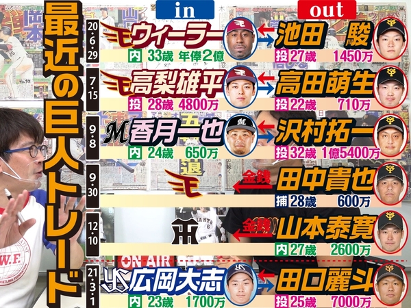 巨人ファンだけでなく球界全体に衝撃が走った炭谷の電撃トレード。配信ではMCの加藤&水井両デスクが取材メモをもとに、トレードの舞台裏に迫っています。さらに大城、小林、岸田ら今後の巨人捕手陣の展望についても解説。スポーツ報知評論家で元巨人監督の堀内恒夫氏も緊急参戦して詳細にお伝えしています。どれもがスポーツ報知YouTubeチャンネルでしか見られない内容です。
