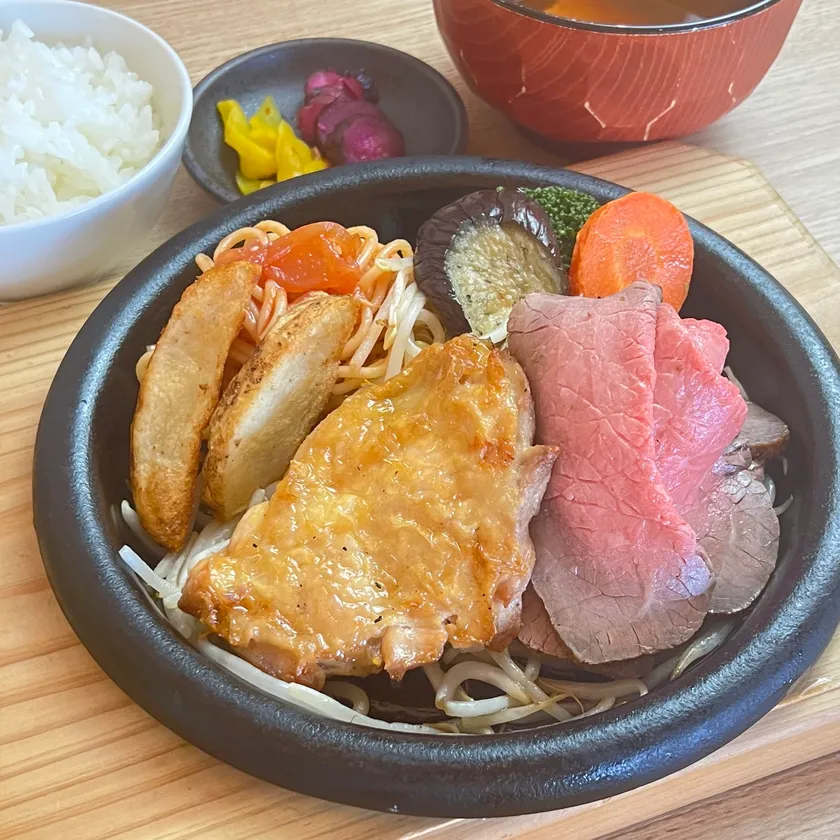 ・鶏もも肉のステーキ×牛赤身肉のローストビーフ ランチ
