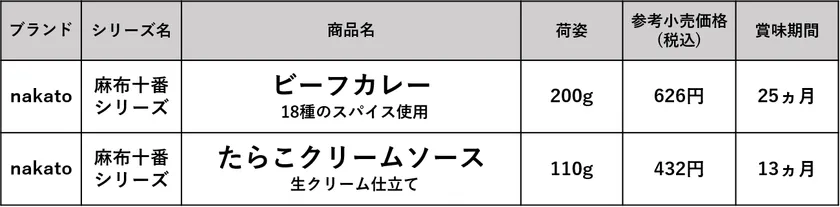 品質にこだわった食品やワインを通じ「食を楽しむ文化」の提案を続け、多面的な事業展開をしている株式会社中島董商店(本社:東京都渋谷区渋谷1-4-13、代表取締役社長:中島 周)は、nakatoブランドで展開する「麻布十番シリーズ」から、『ビーフカレー 18種のスパイス使用』と、『たらこクリームソース 生クリーム仕立て』を、リニューアル発売します。