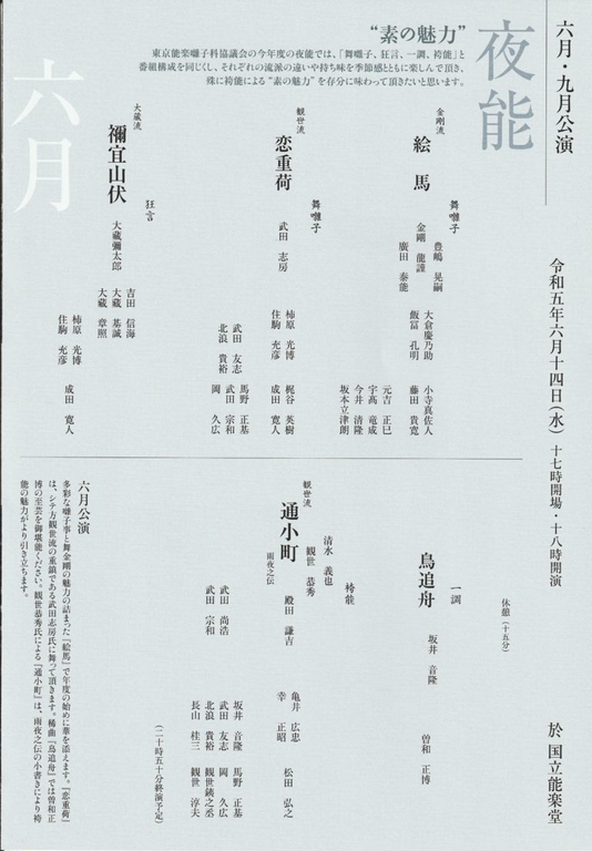 一般社団法人東京能楽囃子科協議会『6月定式能』