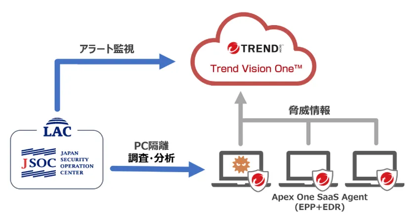 株式会社ラック(本社:東京都千代田区、代表取締役社長:西本 逸郎、以下 ラック)は、エンドポイントセキュリティの運用支援を行うマネージドEDR(Endpoint Detection and Response)サービスに「Trend Micro Apex One(TM) SaaS with XDR」を用いて実現されるEDR機能を加え、2023年5月11日に提供を開始しました。