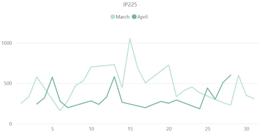【日経平均株価(JP225)のボラティリティ推移(対象月:2023年3月・4月)】