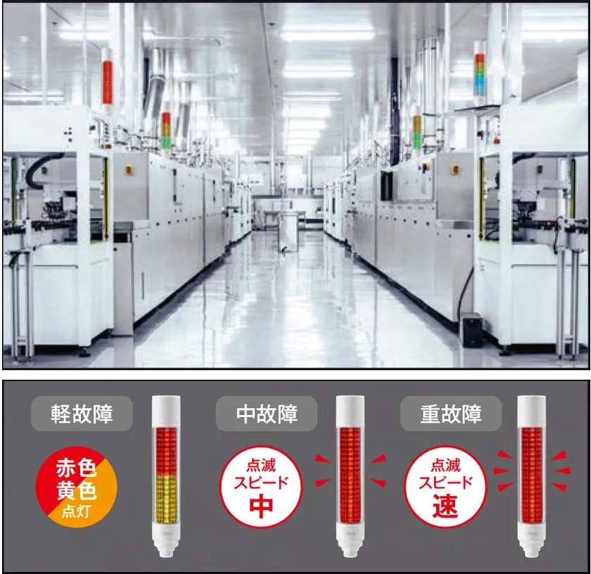 全段を同色で点灯させたり、点滅速度を変更することで、より詳細な情報を見える化できます。