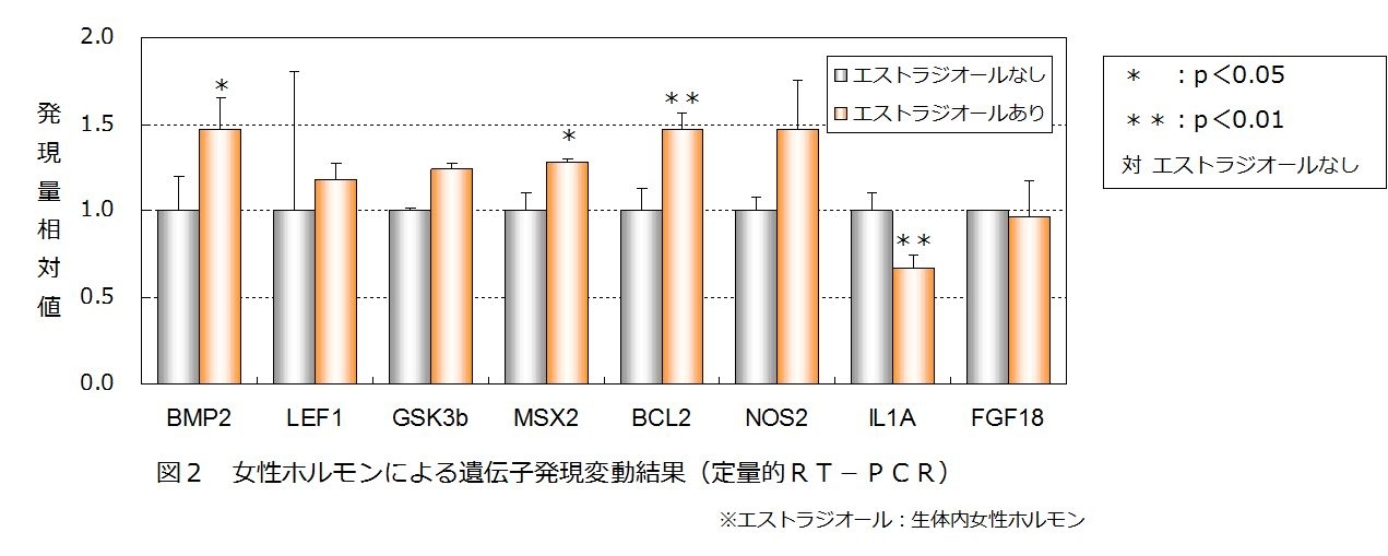 図2 女性ホルモンによる遺伝子発現変動結果(定量的RT-PCR)