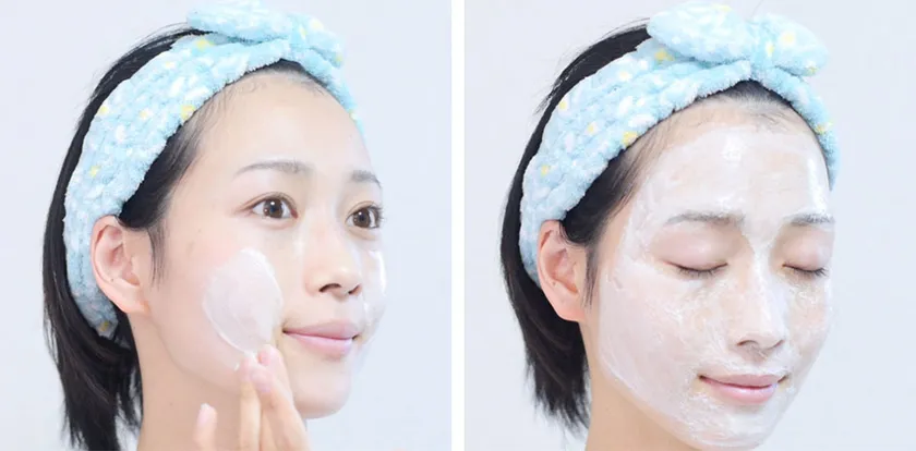 ペースト状の洗顔料を直接肌に塗布し、そこに少量の水を加えて優しく汚れになじませるようにすると肌の上でクリーミーな泡が立ちます。