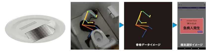 ・AIの技術を使った「骨格分析」により、個室内を常時検知。