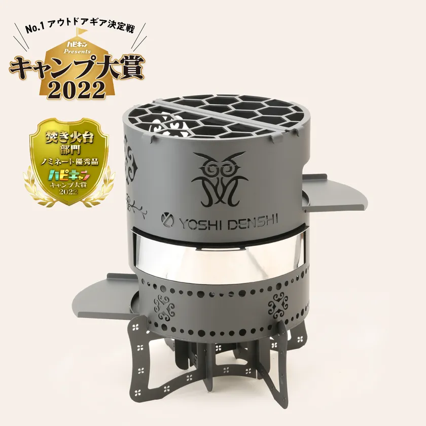 公園遊具や都市景観の製造、塗装を手掛けるヨシ電子株式会社(所在地:栃木県さくら市、代表取締役社長:安藤 嘉浩)が展開する新興アウトドアブランド『ヨシデンシアウトドア』(以下 YDアウトドア)の焚き火台『グランピングクッキング』は、この度ハピキャンPresents キャンプ大賞2022 焚火台部門でノミネート優秀品を受賞いたしました。