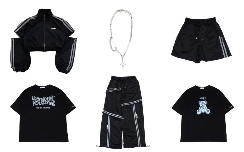 テーマカラーをブラック×メタリックシルバーとして、LAND by MILKBOYらしいY2Kやストリートテイストを取り入れたデザインに、ゆきりぬの“好き”を詰め込んだアイテムを展開。