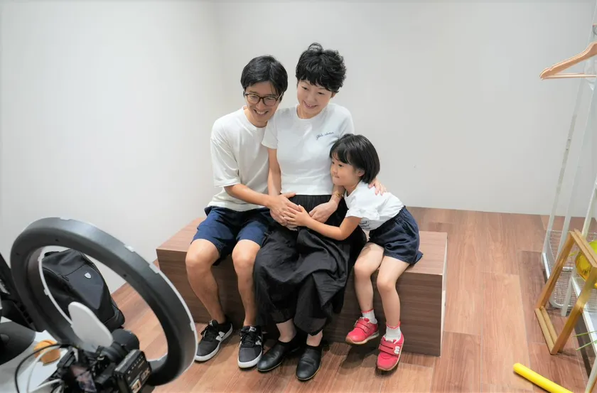通常プランを3名以上でご利用になる際に必要な追加料金1,500円/人が、マタニティフォトプランではご家族は追加料金無しでご一緒に撮影いただけます。(スタジオ内の最大推奨人数は6名ですので、6名以上でご利用の場合は事前にスタッフにご相談ください。)